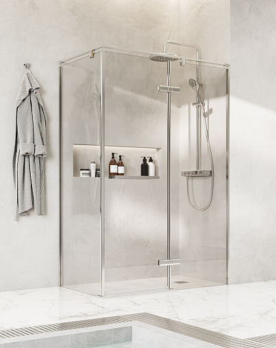 Уникальный стиль новой коллекции душевых ограждений Roca ACROPOLIS прослеживается в каждой детали. Элегантные петли с фасками, удобные ручки и плоский верхний профиль создают неповторимый дизайн душевого пространства. Тонкий стальной профиль визуально облегчает конструкцию душевого ограждения, но при этом остается надежным и очень прочным. Безупречное сопряжение всех элементов ограждения делает душевое пространство красивым и понастоящему комфортным в использовании. Расширение пристенного профиля до 5 мм позволит компенсировать неровности стен. Ограждение выполнено из безопасного закаленного стекла толщиной 8 мм. Покрытие Maxiclean отталкивает капли воды, не давая им засыхать на поверхности стекла, благодаря чему ухаживать за ограждением значительно проще.