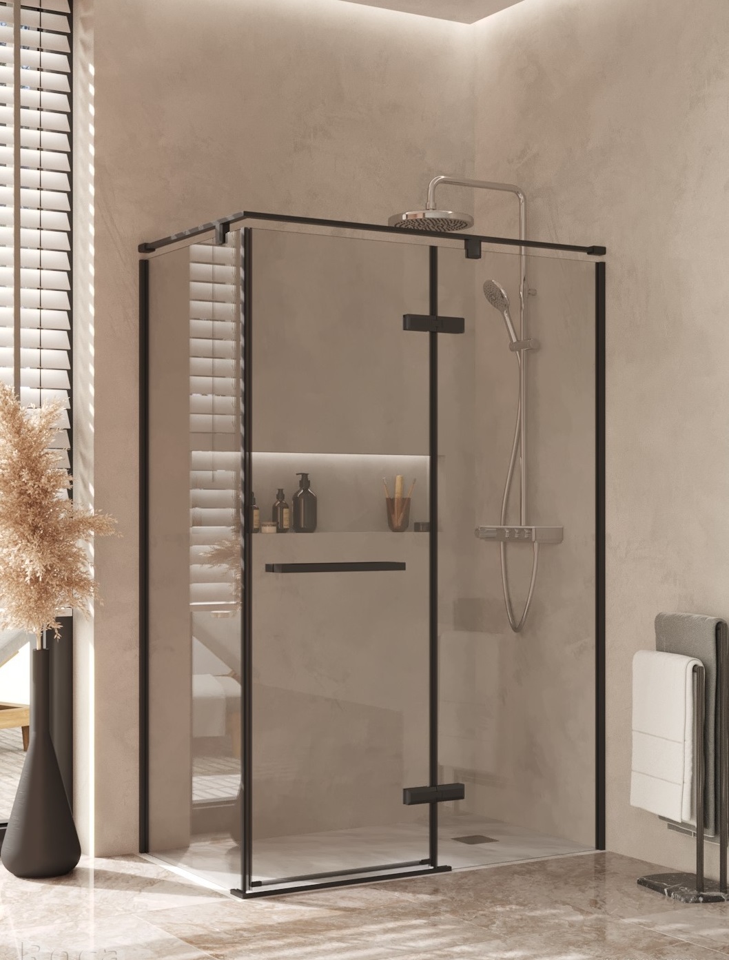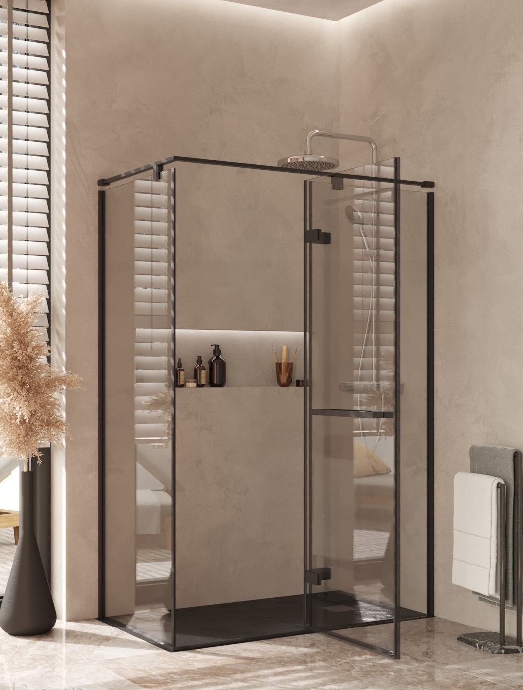 Душевое ограждение Acropolis 120х90х200 см, правое, 8 мм, черный профиль