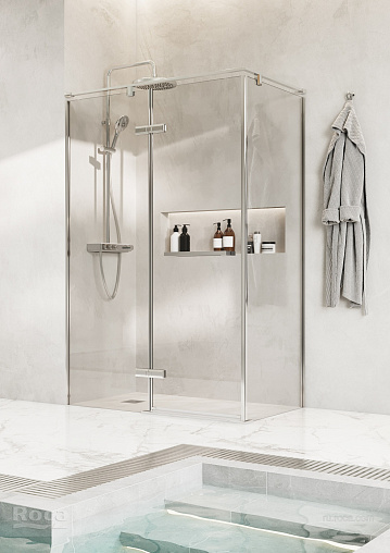 Уникальный стиль новой коллекции душевых ограждений Roca ACROPOLIS прослеживается в каждой детали. Элегантные петли с фасками, удобные ручки и плоский верхний профиль создают неповторимый дизайн душевого пространства. Тонкий стальной профиль визуально облегчает конструкцию душевого ограждения, но при этом остается надежным и очень прочным. Безупречное сопряжение всех элементов ограждения делает душевое пространство красивым и понастоящему комфортным в использовании. Расширение пристенного профиля до 5 мм позволит компенсировать неровности стен. Ограждение выполнено из безопасного закаленного стекла толщиной 8 мм. Покрытие Maxiclean отталкивает капли воды, не давая им засыхать на поверхности стекла, благодаря чему ухаживать за ограждением значительно проще.