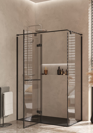 Душевое ограждение Acropolis 140х80х200 см, левое, 8 мм, черный профиль