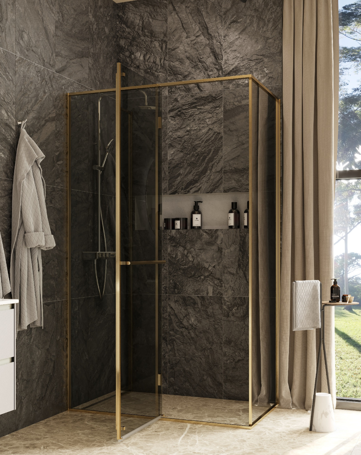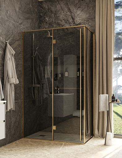 Душевое ограждение Apex 120х80х200 см, левое, тонированное стекло, 8 мм, золотой профиль