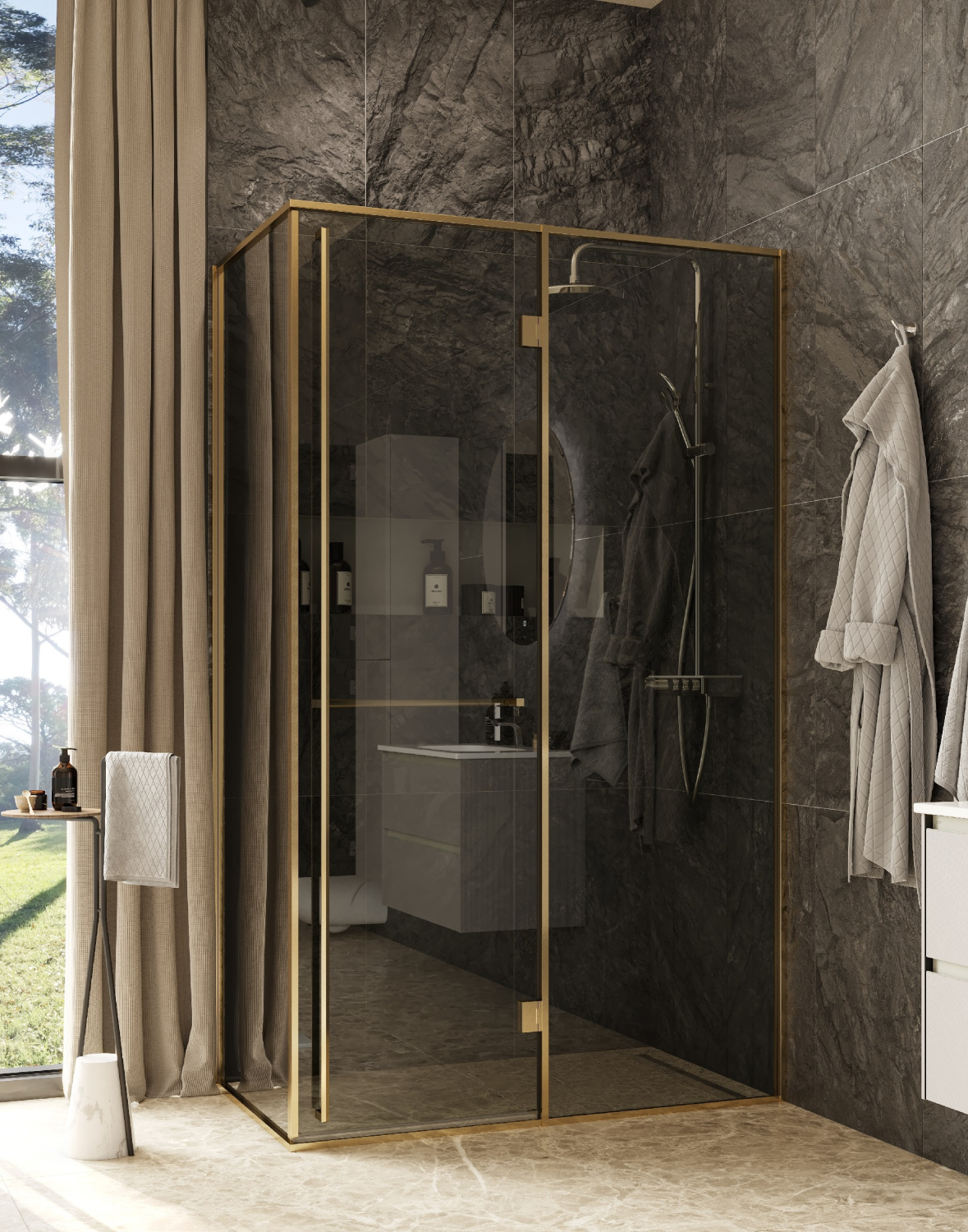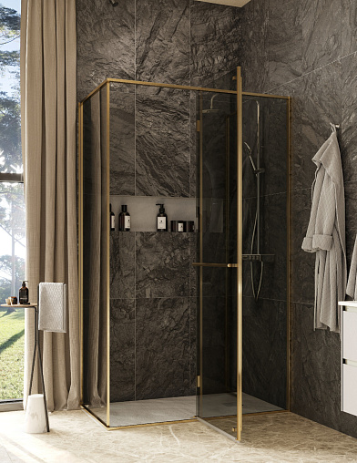 Душевое ограждение Apex 120х90х200 см, правое, тонированное стекло, 8 мм, золотой профиль