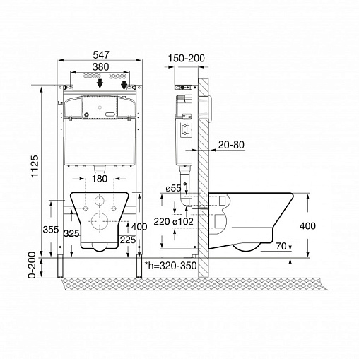 ПЭК Roca Leon ZRU9307623 подвесная чаша Rimless + инсталляция + сиденье дюропласт, без панели смыва