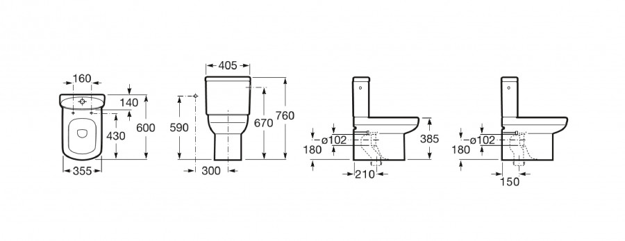 DAMA SENSO чаша унитаза приставная 405x600x385 мм, с двойным выпуском, белый