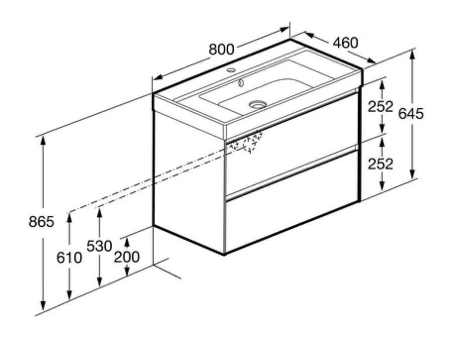- Тумба под раковину - 1 шт., Ящики - 2 шт, направляющие скрытого монтажа с доводом - 2 шт, регулируемые навесы - 2 шт, организация под сифон - шт.