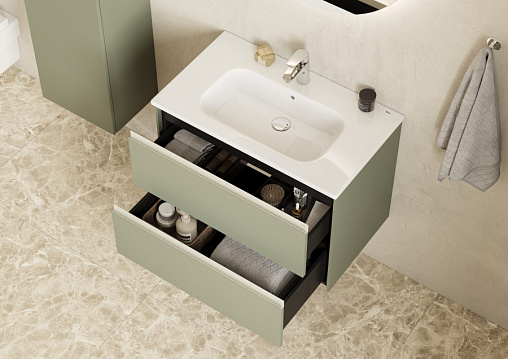 Тумба под раковину Roca Ona Olive 800 оливковый матовый, 2 ящика, ZRU9307860