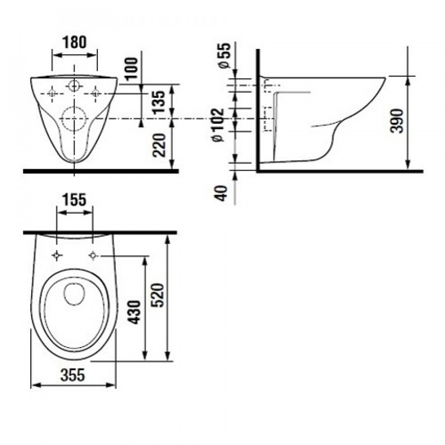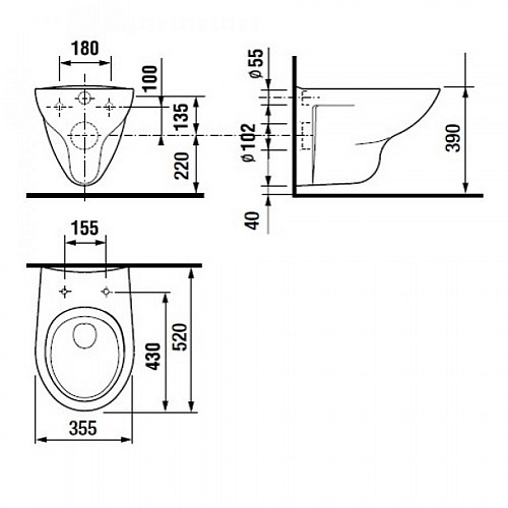 Подвесной унитаз Mateo 35,5х52 см, с сиденьем