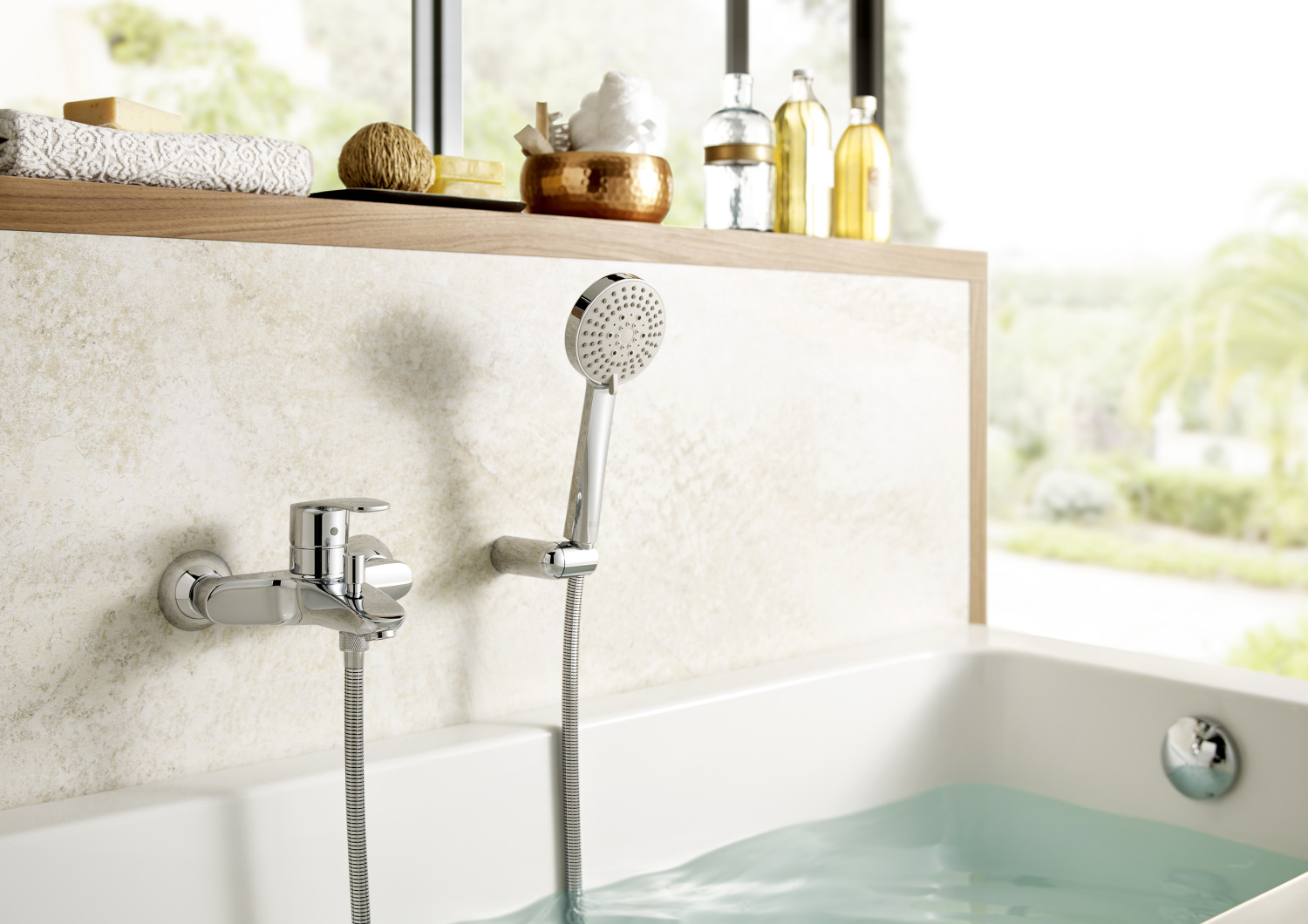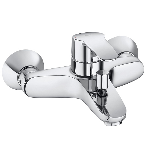 Roca Eos-N Смеситель однорычажный для ванны-душа настенный монтаж без душевого набора в комплекте автоматический переключатель: ванна/душ встроенный обратный клапан аэратор с функцией легкой очистки от известкового налета подключение душевого шланга 1/2 S-образные эксцентрики с шумоподавлением Roca SoftTurn; керамический картридж для плавного хода рычага смесителя, контроль и точность при выборе напора и температуры воды Roca EverShine; хромированная поверхность, надежная защита от коррозии и ослепительный вид смесителей на всем протяжении срока эксплуатации