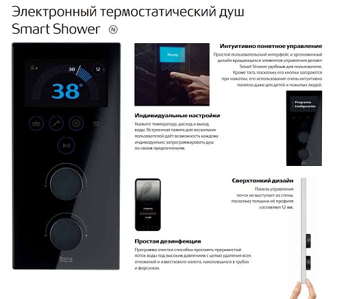 Smart Shower, электронный смеситель для душа, Wi-Fi, 230В, арт. 5A104AC00, Roca