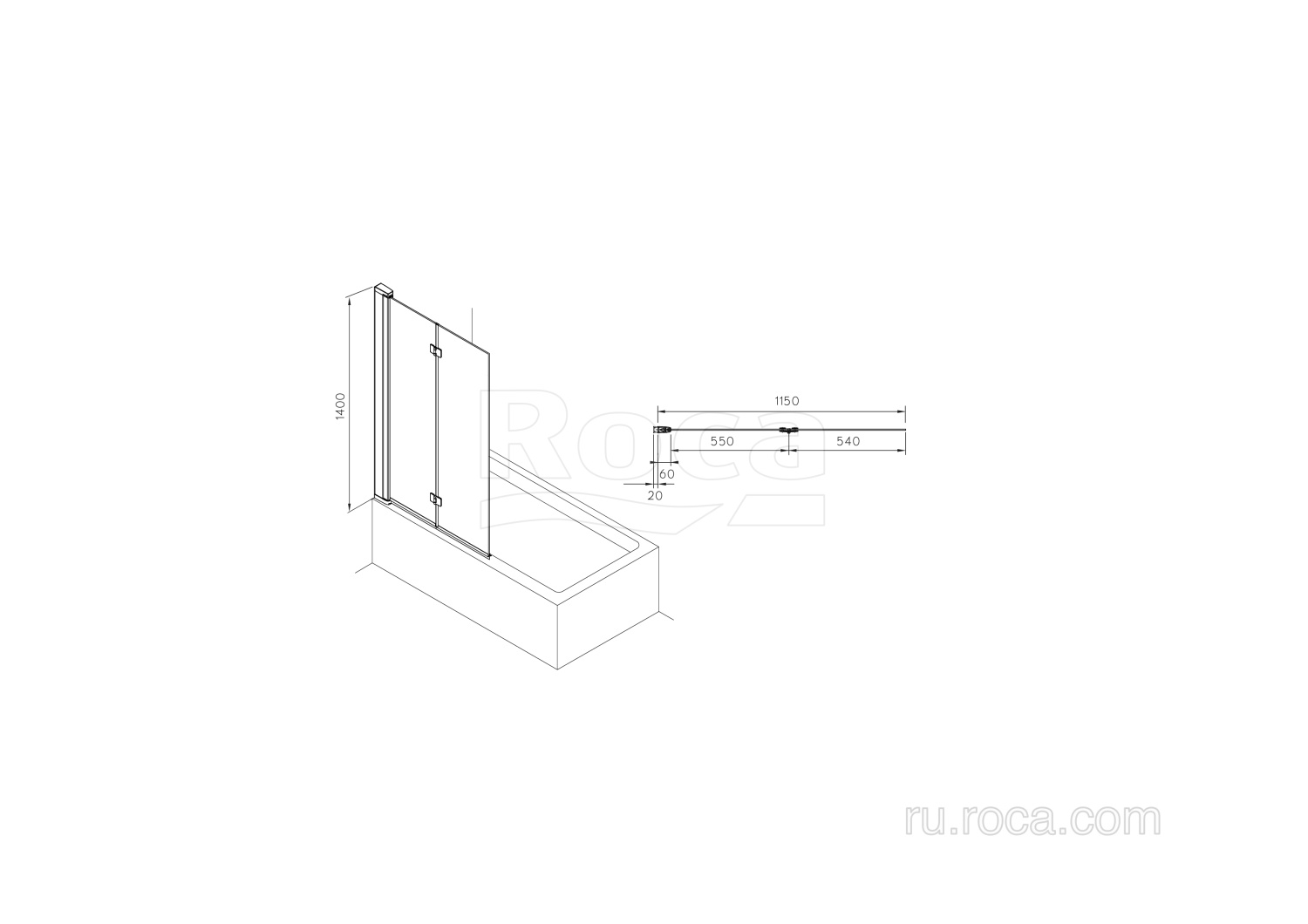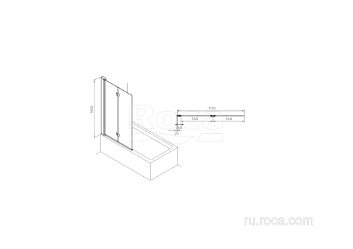 Capital 115х140см, шторка для ванны, прозрачная, гармошка, покрытие MaxiClean, арт. M4111512M, Roca