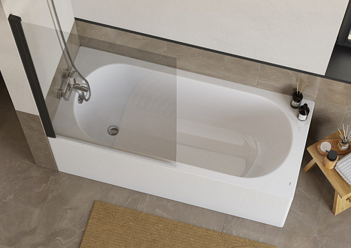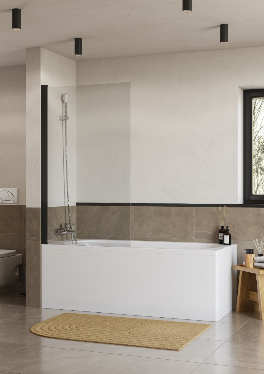 Шторка для ванны Capital с открыванием на 180 градусов (внутрь и наружу) выполнена из закаленного стекла 6мм с гидрофобным покрытием MaxiClean и алюминиевого профиля черного цвета.
