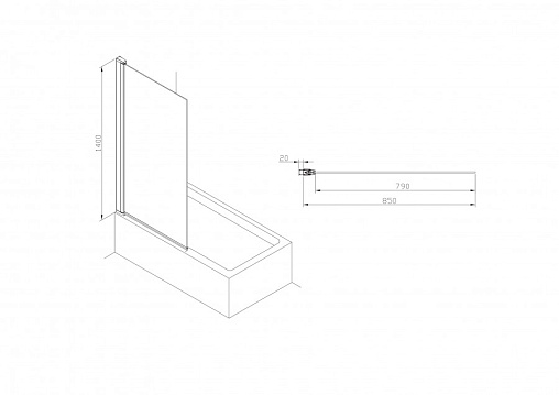 Шторка для ванны Capital 85х140 см, прозрачная, поворотная, черный профиль