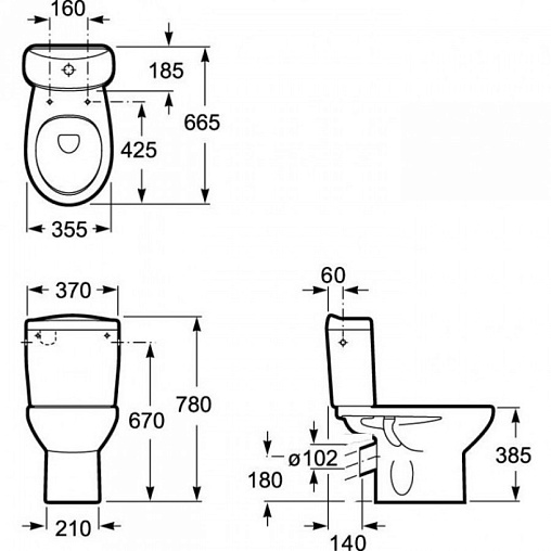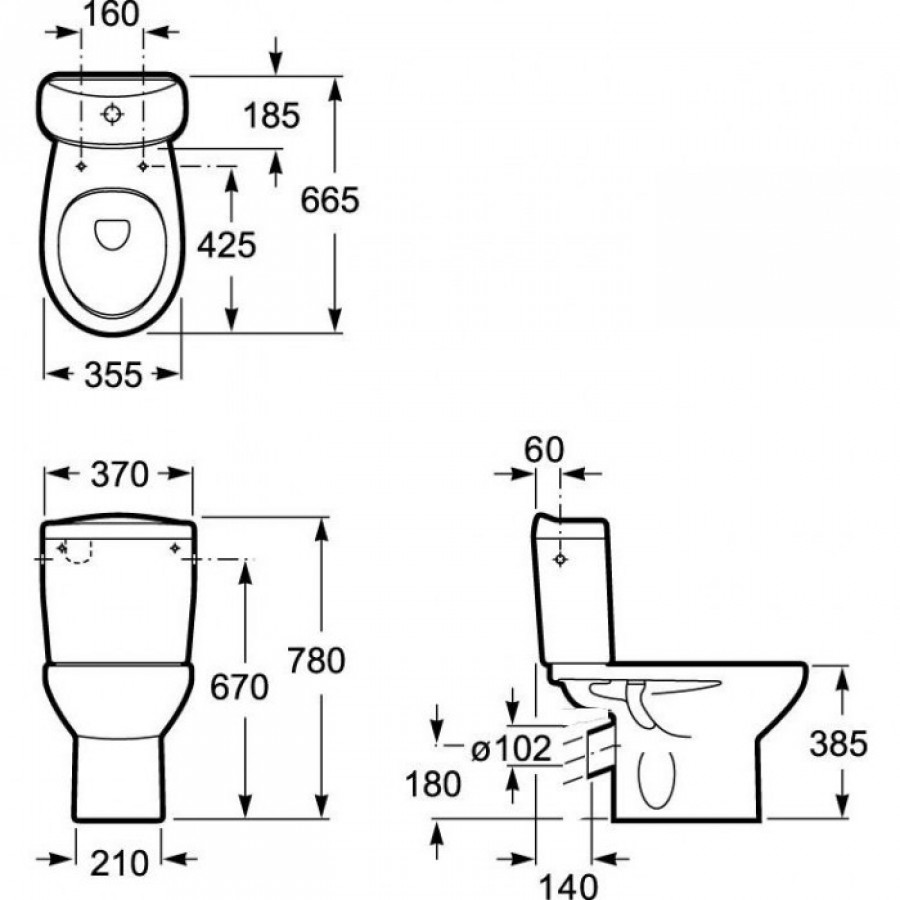 Унитаз-компакт Victoria 35,5х66,5 см, косой выпуск, нижняя подводка, с сиденьем