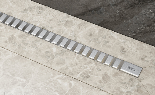 Продвинутый линейный трап для душа Roca Flow Slim с узкой перфорированной решеткой в стиле слим служит для отвода воды из душевого пространства и придает ей особый утонченный внешний вид. Желоб и решетка полностью выполнены из высококачественной нержавеющей стали 304 марки, обладающей высокой устойчивостью к коррозии. Душевой трап поддается тонкой настройке высоты благодаря регулируемым опорам и особенностям строения решетки. Длина данного трапа также поддается корректировке - корпус вместе с решеткой можно подрезать до необходимой длины. Трап оснащен змеевидным мокрым затвором, который не пропускает неприятные запахи из канализации в душевую комнату и не отнимает лишнее пространство по высотре при монтаже изделия.
